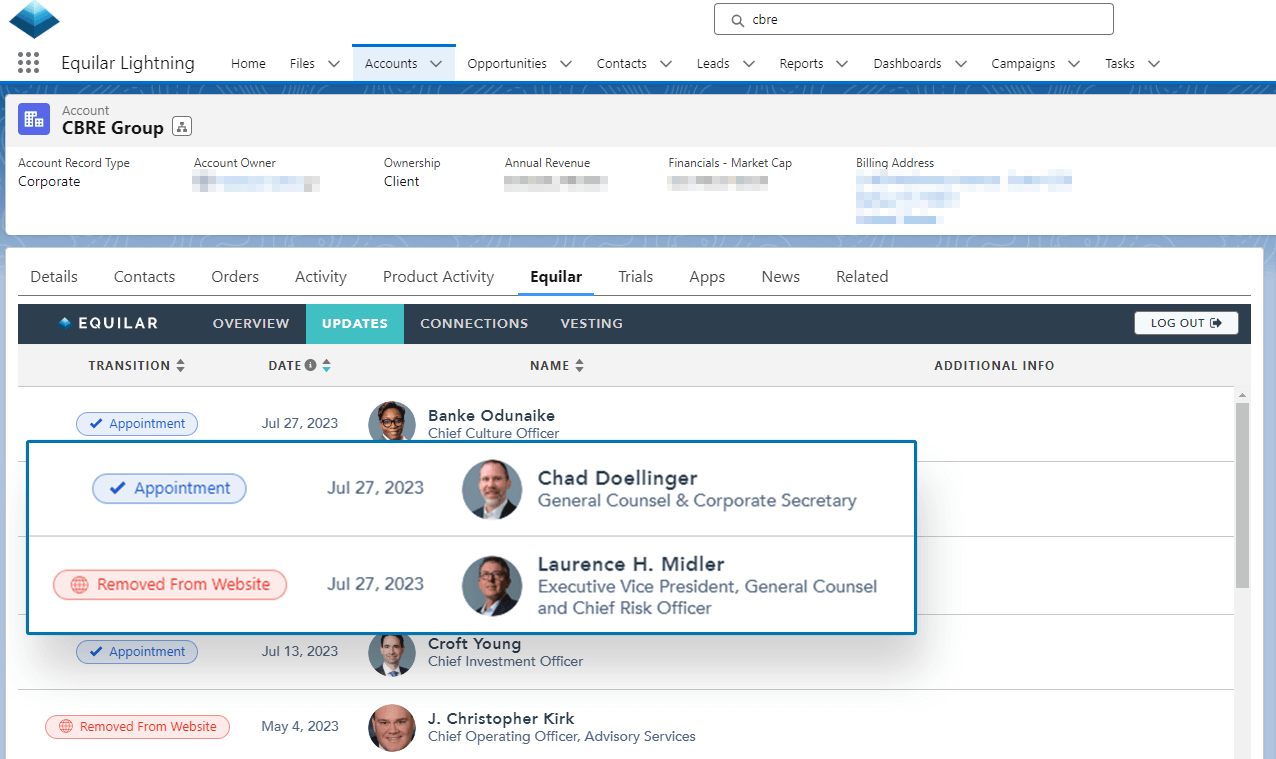 Sync real-time executive profile and affiliation data into their CRM for rich insights